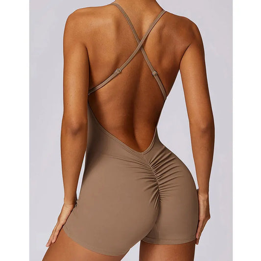 Open-Back Fitness Shorts Jumpsuit